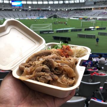 前回と同じ自由席だが、前半は応援まっしぐらのグループが前後にいる席に座ってしまい、前のグループがずっと立ちっぱなしで応援していて、その間から試合を観ている状態だった。