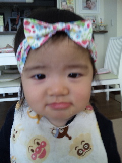 姫一歳五ヶ月(^0^)/ またまた久しぶりの更新ですf^_^; 仕事がはじまると、やっぱりバタバタして一日一日があっというまに過ぎ去ってしまいますね(-.-;) 平日仕事してるぶん、休みは、予定がぎっしりに・・・そうじゃないと気分転換出来ないしね)^o^( そんなわけであっという間に今年も一ヶ月がたとうとしてますf^_^; 姫は相変わらず鼻水が治りそうで治らない・・・(>_<)なかなか長い付き合いです(>_<) 先日パパさんがマスクしてるのを見てまねをする姫(^^) 大きなマスクをつけて満足げです)^o^( 「これでもう風邪ひかないわ(^0^)/」 とでもいいたげ(^^) もう一枚の写真は、ママいたずらの一枚(^^) ベビー用の髪飾りのようなカチュウシャのような・・・(^^) 海外の赤ちゃんなんかがよくやってますよね・・・(^^) しっかし、似合わない姫・・・ コントのようだわ(-.-;)