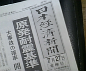 今日の日経一面です!原発耐震基準強化!おいおいーーーーーー、震度6で想定外?そりゃないよーーーーーー!震度6なんて最低クリアラインだよ!地震プレートにのってませんって、日本でそんなとこ探すのが大変!エネルギー問題、耐震問題など難題山積み!みんなで考えないと!