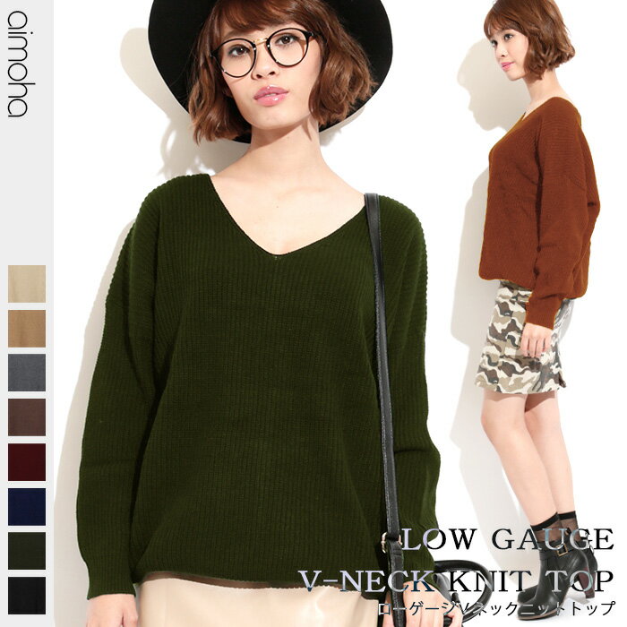 ポチ 1,280 円 送料込 【セールITEM♪】[送料無料]ローゲージVネックニットトップス/ニット/セーター/トップス/ニットトップ/Vネック/ローゲージ/ざっくり/ざっくりニット/チュニック/ジンジャー/レディース/レディス無地