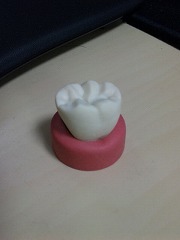 定期的に検診へ行ってはいるものの、眠っていた左上の親知らずの虫歯がとうとう姿を見せ、我慢できなくなりました。 以前からどうするか?という話にはなっていました。治療法としては、1、歯は残し、神経は取ってしまう2、歯を抜いてしまう の2パターンなのですが、すでに左下の親知らずはないので無用の長物となっています。なので、抜いてしまう…がベターだという話なのですが、未だに母乳をあげているので、「抜いたあとの痛み止めは処方できません」とのこと。痛み止めを出すには母乳をあげるのをストップしないとだめとのこと。 ところが寝る前は必ずさつきに「乳を出せ!」と脅されている毎日で、あげなければ近所に響き渡る大声で号泣なので、母乳をストップという選択肢は選べず…。 しかし1パターンだと削って神経抜いて型を入れてで2,3日歯医者に通わなければならないとのこと。さつきを抱っこしたままの治療はしんどいので、痛みを我慢しようと2を選択。以前抜いたとき2、3日はしくしく痛かったのでちょっとドキドキしてましたが、痛みぐらい耐えたるわ~い!の勢いで抜いてもらうことにしました。 担当してもらっている歯医者さんは、ちょっと雑なのですが腕前は確か。麻酔が聞いた後、ゴリゴリッといったかと思うと、「はい、抜けましたよ~」と。 ものの10秒ほどで親知らずが抜けてしまいました。 あっさり抜けすぎて拍子抜けしましたw結局、麻酔が切れてからも痛みはなくてかなり快調に過ごせています。日々のデンタルケアは怠らないよう、しっかりがんばらねばと思った一日でした。余談:いつもさつきを抱っこしながら検診を受けているのですが、さすがに時間が長引いてくると飽きてしまうようで… ぐずったころに子ども用に箱の中にいっぱいある消しゴムの中から好きなものを選んで、消しゴムをくれます。動物や食べ物の形をしたかわいい消しゴムがある中、さつきはこれをチョイス。うーん、シュールw