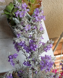 寄せ植えに使っているシルバーリーフ穂状に咲く淡い青紫色の花が エレモフィラ・ニベア花期4~6月 ハマジンチョウ科 半耐寒性常緑低木当地では軒下で越冬茎が柔らかく花の重みで倒れぎみになります。 ・・・ 軒先で冬越しでき春になり葉色が美しくなってきた小さな花を咲かせますが花はなくても葉色を十分楽しめます。モミジバゼラニウム ・・・ バラ今年の開花時期はどうなんでしょうか 蕾が割れてきた ベビーロマンティカ 他はまだまだですねピエール・ドゥ・ロンサール ・・・ ご訪問ありがとうございました。宜しければ↓クリックお願い致します。にほんブログ村寄せ植え・ハンギング ブログランキングへ