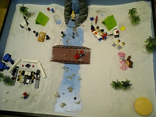 今日の箱庭の世界レゴのブロックをたくさん使って上の方の黄緑色の三角の物は キャンプのテント右下にあるのは、仕事の服を着た人たちが、温泉に入浴中滝に打たれている人あり車の変わりに バイク細部にまでこだわって、それぞれに意味がある様子カウンセラーの先生とそれはそれは楽しそうに作業をしていた様子私は隣の部屋で・・・うたた寝前回同様 真ん中に 川(水面)が、ある。ちなみに前回の箱庭