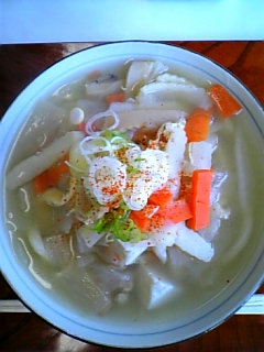 今朝は、うどんのなかにしに夫と二人で行って、私は、写真のしっぽくうどん夫は、かけうどんを食べたしっぽくうどん、私は大好きで、いろいろなうどん屋さんのを食べ比べたけど、私のお気に入りは、ここ季節限定なので、春が来るとそろそろおしまいになる私は、夏でも食べたいのに・・・