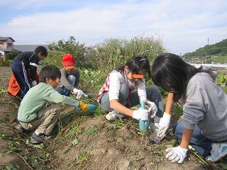 5月には、そら豆狩り。そして、今日は…お芋ほり。いつも、私たち母子の事を気に掛けてくださっている元保健室の先生に、今回もご招待いただいた。私たち母子と、友だち母子。総勢7人。8月に一度、私と二太郎と2人で草取りには伺った。先生には『かっこ悪いところ』知られている一姫は、あまり顔を合わせたくない様。そんなこと気にすることないのに!!!だから、一姫は草抜き不参加。今回、まず芋ツル除去から。でっかい(気持ち悪~い)芋虫さんたちもどっさり草もついでに抜いて。さぁて芋ほり開始どんなのが出てくるのかな?ワクワク・ドキドキの時間。お芋を傷つけない様に、少し気をつけて出てきたのは… でっかいv(^^)v私たち親も、夢中で少し掘ったとても楽しい時間となりました。お土産に掘ったお芋たちと、他に里芋・ゴーヤ・ピーマンなども頂いて…『おいしい』と『気持ち』と載せて、何となく車のトランクも重いいつも感謝・感謝なのでしたm(_ _)m