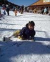 いよいよ、シーズン到来って言っても、スキー場開きは、まだまだ1ヶ月も先の話だけど…。先日、我が家にリフト共通1日券・500円割引券が4枚来たどこからか?それは、我が家のホームグラウンド大山スキー場 この写真は、3歳でスキー場デビューした時の、一姫。今は、スキーを履いてちゃんと滑りますよ二太郎もソリ専門家だったのが、昨シーズンより暴走スキーヤーに転身ソリでゲレンデを滑ってリフトに乗っていたかわいい二太郎クンはいずこだいたい、親の後を、慎重に子はついて滑るイメージがあった私。夫の特訓の後、母とも滑ってOKが出て、「じゃぁ、行こう」私は、気を遣ってゆ~~~っくり滑っていたら… ↑ 精一杯とも言うあらっいつの間にか、横に並んでて…「二太郎、(スピード出したら)あぶないよちゃんと母さんの後ろ付いて来て」って言ったら…「母さん、遅いんじゃ~~~!!!」母は「・・・」言葉もございません。案の定、その後、父親と滑っていて、一回転身軽な彼は、無傷。でも、運がよかっただけさぁやっぱり怪我だけはしないように…。それが何事も長く続けるコツ