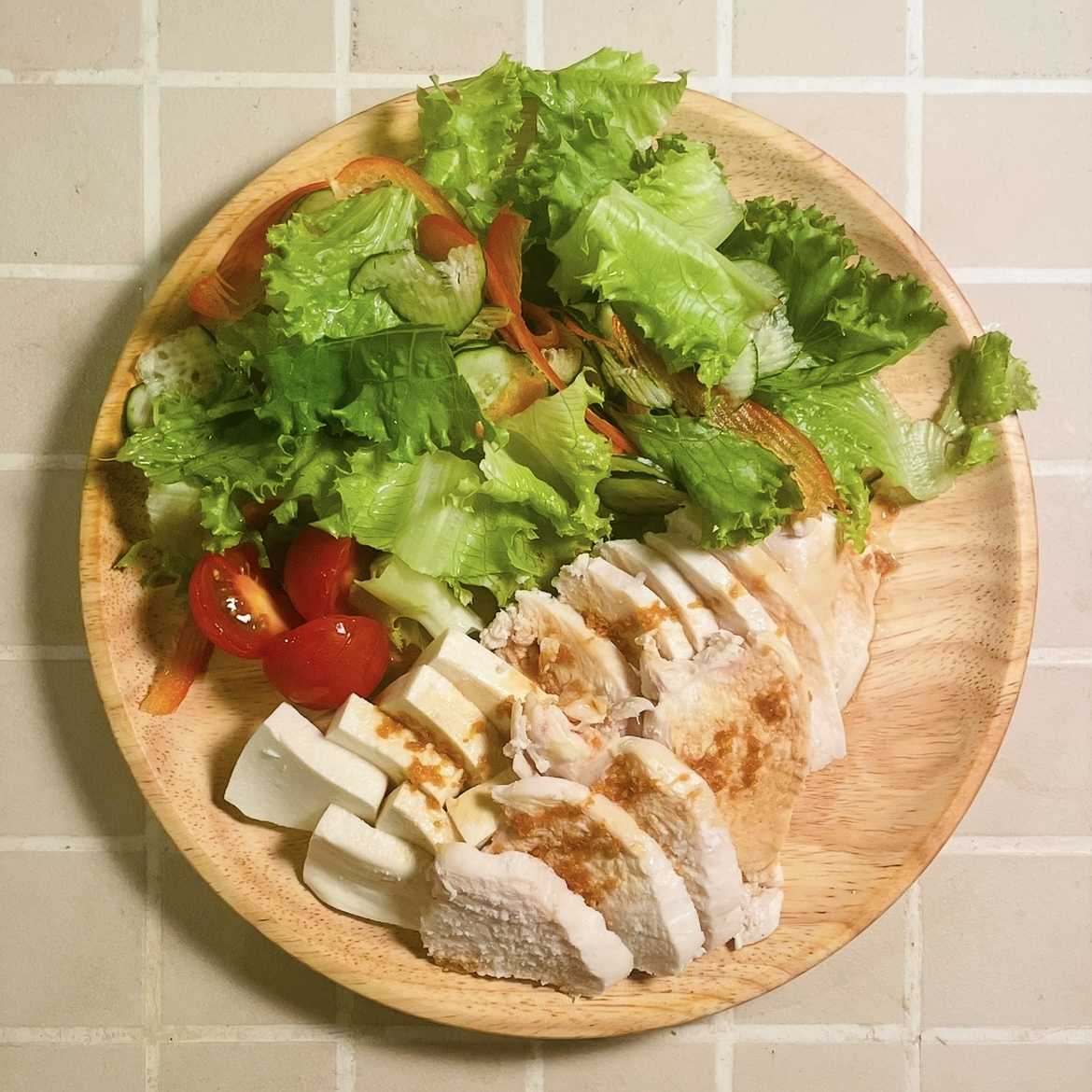 シンガポールチキン風鶏胸肉、木綿豆腐