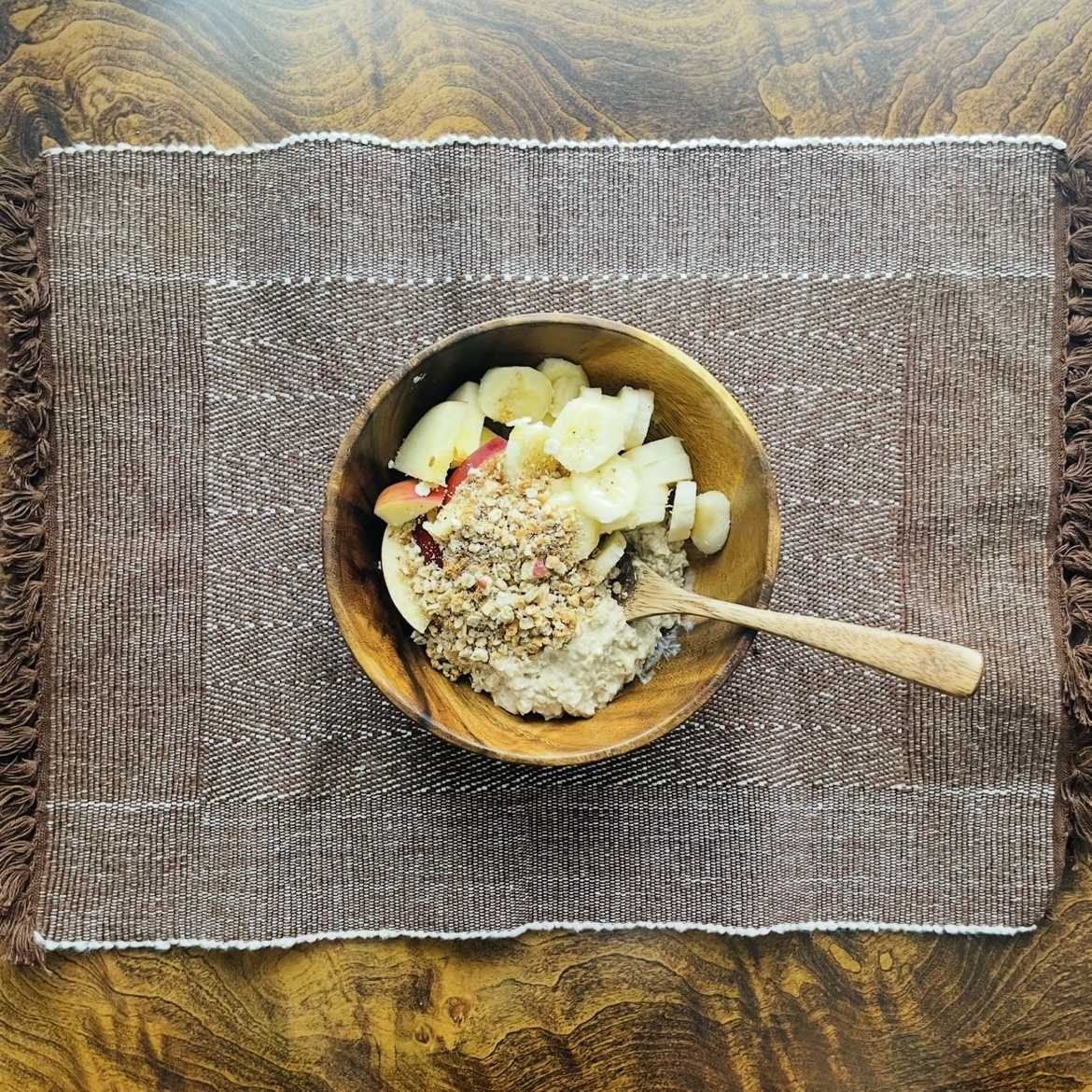 昼:オーバーナイトオーツ、グラノーラ、リンゴ、バナナ