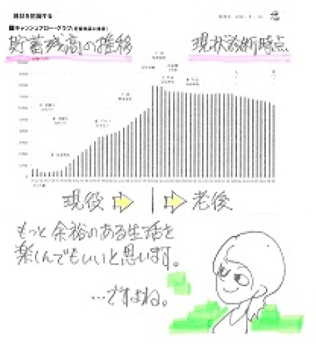 再就職と職場復帰・・と。とにかく、よかった、よかった。言うまでもなく、夫の稼ぎは重要です。真剣に ・・生活設計。 しごとにふっき・・?〇メール顧問会員の I さん(50代) (相談:ライフプランニング)ただ今、再ヒアリング中です。メールをいただきました。 ※は、私の声。武田様、佐々木様 再ヒアリングシートが大変遅くなり、申し訳ありません。20日の記事を拝見して、あせってメールを書いています。 実は、主人の再就職が決まりました。 ※おっ!! よかった! おめでとうございます!この年齢では難しいかも、と思っていたのでほっとしました。 ※50代 ・・です。収入は〇〇〇万ダウン、〇〇〇万近くあった住宅手当もないし、退職金もないそうです。 ※ ・・なるほど。それでも、この年齢で再就職ができたのは、本当にラッキーだと思います。 ※本当に良かった・・ですね。ただ、年棒制、毎年契約更新という形だそうですので、今年はとりあえず〇〇〇〇万ですが、来年以降はわかりません。 ※結果次第・・ということですね。本人は、順調に右肩下がりだろうと言っています。 ※ む ぅ ・・。 (^^ゞまた、同業種ではありますが、今まで働いていた外資系メーカーとは全く違う様子の会社なので、続くのかな~という心配もあります。 こんな事情でしたので、この先の見通しをどう書きこんでいいものか、悩んで遅くなってしまいました。 ※そうですね。 収入の見通し、難しいですね。突然、〇〇を〇われたためか、確実な見通しなんてどこにもない気がしてしまって。 ※すさまじい体験をしました。 無理もありません。あとは、住宅の問題もはっきり決められませんでした。退職直後は、貯金を崩して賃貸で暮らそうと思ったり、実家に戻ろうと考えたりしましたが、退職すると、まともな家を借りるのは大変だということがよくわかったので、 ※安定収入が無いと・・ 住まいを確保することさえ、 難しくなります。 すごい体験をしました。さっさと家を買ったほうがいいのかとも思います。(すでにすごく遅いですけど@50代)でも、主人の母は長男である主人が実家に戻ってくるものと信じているし、私たちは、ここ〇〇で生活の基盤ができてしまったし、家を買う場所さえ決められないのが今の状態です。75歳くらいまで、快適なマンションを借りて、そのあとは介護付き老人マンションに入る、というのが希望ですが、これではお金がいくらあっても足りないでしょうね。先にしっかりしたビジョンがないのが、うちのお金がたまらない原因かも。とりあえず、目先の楽しいことにお金を使ってしまいます。 ※そのようです。 人間・・だれしも、 収入なりの生活をします。 (当たり前) I 家の支出は、 一般家庭に比べたら、 かなり多い ・・です。2013年は、住宅取得をどうするか、ちゃんと考えたいと思います。 資料を別便でお送りいたしますので、よろしくお願いいたします。本年は大変お世話になりました。辛い時期に励ましていただいて、涙がでるくらいうれしかったです。 ※大変な2012年・・でした。 将来・・振り返って、 笑って話せるように なれたらいいですね。来年もよろしくお願いいたします。武田様、佐々木様、どうぞよいお年をお迎えください。 ※ I 家も・・。〇顧問会員のNさん(30代) (相談:生活設計・マイホーム建築)ただ今、再ヒアリング中です。メールをいただきました。 ※は、私の声。武田さまお世話になっております。Nです。再ヒアリングシート、添付しました。定年を60歳としていましたが、65歳に変更でお願いします。夫ですが、〇〇のため〇〇月〇〇日~〇〇月〇〇日まで病気休暇をとっておりましたが、〇〇月〇〇日から無事復帰しました。 ※おっ!! よかった! おめでとうございます!しばらくはリハビリとして時短勤務することになりますので収入がだいぶ減りそうです。。(病休中は基本給全額出ていました) ※やむをえない・・ですね。時短勤務の期間は不明なのですが、とりあえず半年で想定して計算しようと思っています。1月の給与が出てからまた年収は調整させてください。 ※了解 ・・です。夫の年収が下がるので私も早く働かなくては~。。 ※・・ですね。フルタイムで探そうか、パートで働くか。。早く見極めたいです。車も手放すことを少し検討中です。 ※はい、車のコストは 大きいです。※ひとつ質問なのですが、解約した保険に関する書類って処分してしまっていいものでしょうか? ※確定申告で使うもの ・・が無ければ、処分OK。それではよろしくお願いいたします! ※了解しました。今日の佐々木FP〇メール顧問会員のKさん(20代) (相談:ライフプランニング)現状診断 資料作成作業。今日(12/25)、整理整頓が終了し、「再ヒアリング」として送る予定でした。・・が、武田FPは一日中外出・・佐々木FPの帰宅後に事務所に戻りました。一応・・整理整頓は終わっているようですが、送ることはできません。明日、確実に送ります。(スミマセン!)〇メール