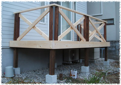 去年から、旦那さんにず~~~~っとお願いしていたウッドデッキ!! でも、なかなか旦那のお休みがなくて造ってもらえませんでした もう、いっその事、業者に頼もうかな~ でも、お値段高いからな~ と、悩んだり、愚痴ったり(旦那に)していたら 旦那さん!!なんと!!夏休み連休が取れました お盆休み猛暑が続く中、旦那大工は頑張ってくれました 真夏日の中、がんばる旦那 頑張れ旦那 休憩中? tomukoは旦那が切った木にサンダーをかけ、土台の木にペンキを塗りました け・・・決して何も手伝わなかったわけではありませんよ~ 人気ブログランキングへ 参加してみました
