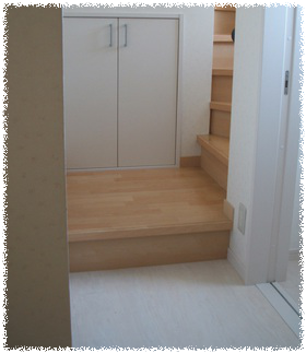 tomuko家 建坪が25坪弱なので!?設計の都合上!?階段一段目が踊り場のようになっております 打ち合わせの段階で OKをだしたのも覚えております昇降に何の支障もありません・・・がこの写真 奥の階段下収納の床は 廊下やリビングと同じ永大産業のパートナーワン が敷かれております以前にも書きました がこの床材一見無垢材のようですその手前、階段一段目は階段と同じフローリング素材です 一段目も一階廊下と同じ パートナーワン がよかった!!大工さんがいる時は養生してあったので な~~んにも 気が付かなかった見えない収納の中にするくらいなら 階段一段目に。。。と、思っちゃいました!! 旦那や娘は別に気にならないみたい 私だけがこだわってる数ヶ月で慣れちゃいましたけどね でも、やっぱり・・・;; 人気ブログランキングへ depuis 2005 CHEE Tous droits réservésconçu par Chee