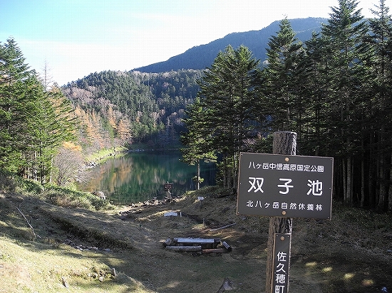 10月28日 蓼科山&池めぐり亀甲池から双子池に向かう道は、北八ツらしい、苔が一面に覆われる深いシラビソの森のなかの道でした。けれども、そこを過ぎると、今度はまるでヨーロッパの湖沼風景のような、明るい湖畔に出ました。双子池の一つ、雌池です。水は澄んでいて、本当にきれい!湖畔に一つだけテントが張ってあり、登山者が一人、岩に腰掛けて景色を眺めていました。話をすると、今日の夜、ここで満天の星を見るのを楽しみにしている…とのこと。いいなぁ。そういう過ごし方…私もテント泊をのんびり楽しんでみたいなぁ。湖畔を歩いて、雄池に向かうと、大岳が見えてきました。雌池と雄池の間に建っているのが、双子池ヒュッテ…ステキな場所に建っていますよね。残念ながら、二日前にもう小屋じまいをしていましたぁ。本当に、八ヶ岳の山小屋は、どれも魅力的です。ヒュッテの向こうには、雄池…