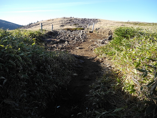 10月28日 蓼科山&池めぐり双子池から樹林帯の急な登りを40分ほど登ると、いきなり展望が開けて、ホーロク平と呼ばれる山頂の草地に出ました。前方には、今日最初に登った前掛山と蓼科山が大きな山容を見せて、聳えています。そして後方には、北横岳と大岳が、こちらも存在感のある山容を見せています。八ヶ岳連峰で、まだ登っていないピークの一つ、大岳。今度機会があったら登ってみたいなぁ。右手は、展望が大きく開け、佐久平とその向こうの浅間山も見えていました。山頂まではあと少し…双子山のことは、八ヶ岳連峰に登るようになるまでは、全くその存在を知りませんでしたし、八ヶ岳の山のなかでは、地味な山です。でも、山頂部分は広く丘状になっていて展望は抜群!!しかも、大河原峠からは30分もかかりません。気軽に登れるいい山ですよね。