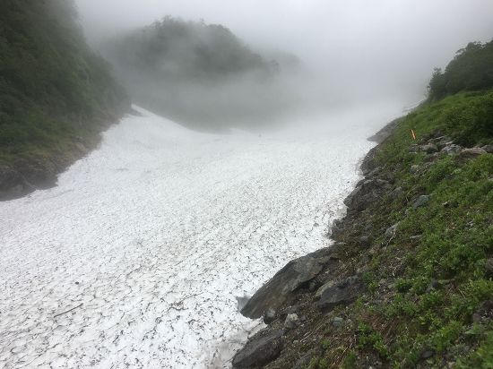 雪渓を渡る風は、天然のクーラーで寒いくらい。