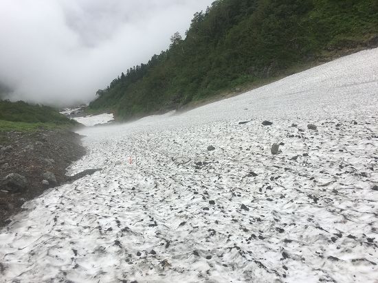 でも、例年より多い大樺沢の大雪渓が気分を高めてくれます。