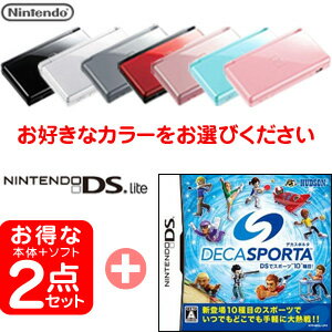 只今ご予約受付中!(2009年12月17日発売)【予約販売2点セット】任天堂DSLite本体+デカスポルタ DSでスポーツ“10”種目!/DECA SPORTA NDS,任天堂,ニンテンドー,DSLite本体,本体,Nintendo,DS,Lite,DSLite,DSソフト,ソフト,デカスポルタ,DSでスポーツ“10”種目!,DECA,SPORTA,DS,10種目スポーツ,10種目,デカスポ価格:23,780円※お好きな本体カラーをお一つお選びください。ジェットブラック Jet Blackアイスブルー Ice Blueクリムゾン/ブラック Crimson/Blackノーブルピンク Noble Pinkメタリックロゼ Metallic Roseグロスシルバー Gloss Silverクリスタルホワイト Crystal White●DS Lite 本体サイズ:(縦)73.9×(横)133.0×(厚さ)21.5mm重さ:約218g【セット内容】・ニンテンドーDS Lite専用 ACアダプタ [USG-002(JPN/USA)]・ニンテンドーDS Lite専用 タッチペン(2本)・ニンテンドーDS Lite専用 GBAコネクトカバー ・ニンテンドーDS Lite用 ストラップ●デカスポルタ DSでスポーツ"10"種目!JANコード:4988607006655 対応機種:DSジャンル:10種目スポーツ チームバトル【発売日】2009年12月17日【発送時期】※発売日から3日以内の発送となります。【2点セット任天堂DSLite本体+デカスポルタ DSでスポーツ“10”種目!/DECA SPORTA NDS】いつでも、どこでも、簡単操作で新“10”種目誰でも気軽に10種類のスポーツに挑戦できる!『ラグビー』『ゴルフ』『ボブスレー』『卓球』『クレー射撃』『セパタクロー』『スカイダイビング』『アームレスリング』『チアリーディング』『スポーツクライミング』1本のソフトで6人までプレイ可能!任天堂 ニンテンドー DSLite本体 本体 Nintendo DS Lite DSLite DSソフト ソフト デカスポルタ DSでスポーツ“10”種目! DECA SPORTA DS 10種目スポーツ 10種目 デカスポ[PR]お中元 自宅用 のりのお買い得情報