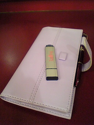 【ボールペン】5,6年前からゼブラやパイロットが出している3色(黒・青・赤)とシャーペンの入った多機能ペンを愛用している。適度に重くて、書きやすい。今はパイロットが気に入っているが、ゼブラとパイロットだと色はそんなに変わらないと思う。プラチナはちょっと色合いが薄かったかな・・・。定価5000円ぐらい。日本橋丸善で買ったけど、あとで、OfficeDEPOで4000円ぐらいで買えることを知りがっかり。【手帳】なんとミスタードーナツのおまけ。去年の11月に300円以上を5回食べたら、これがもらえた。すごく使いやすい。不思議なことに。。。薄くて持ち運び便利。仕事で別途A5のビジネスノートを持っていて、そっちには予定は書かないようにしているので(持ち運び重いから)これとセットで持っている。でもいずれにせよもう少し綺麗な字がかけるようになりたい。。恥ずかしくてノート人に見せられない・・・。【USBメモリ】ヤフーオークションで買った(新品だったけど)ToteBagとかいうやつで1Gある。1Gあるとかなり楽。調べた限りではこれが一番小さい。このミスドーの手帳のポケットに入る。