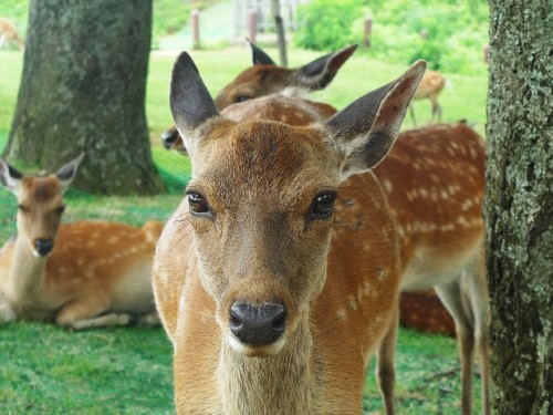 山の中に長い間住んでいると、町中で出遭ったらおそらく警察騒ぎになる動物に普通~に、ココにいるのは当たり前の様に遭遇してしまうのでそのまま見過ごしてしまう事が多々ある。例えば・・・ (c) .foto projectイメージ都会や民家に1匹でも出没すると大騒ぎで追いかけ回される日本猿味覚の秋ともなれば山の麓までやって来て柿やら栗やら人間が食べるよりも早く食べているグループとか、道を横断する親子連れ、団体で電線を伝ってる姿なぞを見たりする。以前、夜勤先に向かう際も「ココはナイトサファリーか?!」と、思う様に運転する自動車の前をセカセカと水場へ移動する鹿の一家だとか・・・時に、狸や野ウサギが横切って行くこともある。イメージ先日、我が主人は鹿に体当たりされ・・・ってケガする程ではなかった様だが、夜のコンビニへ向う途中で肩をドツかれ、心臓バクバクで帰宅した事があった。近所のオジサンの小さな趣味程度の畑の作物をアサりに来た様だ。何年か前、ゴルフ場近くの道に鹿が車に轢かれていたという話も聞いた。大きさにもよるだろうけど、相手が鹿になると車もタダじゃ済まないし、場合によっちゃケガもしかねない。こんな時はどうしたらいいんだろう?!車で動物を轢いてしまった時の連絡先や対処がわかるサイトがあった・・・ココ因みに道路によって連絡先も違ってるみたいだけど・・・•一般道…………管轄の市町村役所または保健所•国道・県道……管轄の都道府県土木事務所•高速道路………各地のNEXCO だって。そういえば長男の知り合いの男性が奄美大島にいるんだけれど、その人の農耕に勤しむマッチョなおじいちゃんは「鹿が道に転がっていたら持ち帰る、車の目の前に飛び出してきたら 構わず轢いて持ち帰って自分で捌いて食べる。あんな美味いもん、 役場の人間にやるなんて勿体ない!!」なんて言ってるそうで。で・・・今日は、長男といつもの一週間に一度の買出しに出かけようと駐車場の車の前にやってきた時の事。車に乗り込もうとしてふと目をやった駐車場出口の道を挟んで反対側の民家の庭に何やらこちらに目を向けている獣らしき姿が目に映る。「(嫌だなぁ、犬は鎖に繋げておかなきゃダメじゃない)・・・?!」咄嗟にその獣に近い助手席側で、まだ乗り込まないでしゃべくっている長男に叫んだ。「早く!車に乗って!!イノシシがいるよ!!」よくテレビで町中に出て騒動を起こしている様なガタイの大きなイノシシでなく、中型のまだ成長途中風のものに見えた。それでも相手は野生のイノシシだ。体当たりされてもヤバイ!イメージ慌てて、車に乗り込んだ長男の目に入ったのは傘を片手に出勤途中の中年男性の姿だった様で、叫ぶ。「イノシシがいます!!」長男がイノシシを指差すのと、男性が振り返るのと同時にイノシシは民家の垣根伝いに裏庭に回った。男性は恐る恐る庭を抜けその民家の玄関の戸を開けると、「庭にイノシシがいますよ!」と叫ぶ。道のカタワラにはイノシシの姿が目に入ったのか、イノシシ騒ぎに気づいたのか固まって動かないでいる中年女性が・・・そんなイノシシ騒動があったのだが、第3発見者にアトはお任せして、そのまま買い物に出かけた我ら親子。帰宅すると夜勤帰りの主人が帰宅していた。「下の家のトコで、何か出たのかなぁ~ 警察やら猟友会が来て、警察が使う盾みたいなのも転がっててさ~」「あれ!そんな騒ぎになってた?!イノシシが民家の庭に出たの。 私、第1発見者だったけど、買い物あるから通りがかったオジサンに アト、任せちゃったんだ。」そっか・・・イノシシレベルになると警察を呼ばなきゃならないんだ。と、この時点で気づく。最寄りの市町役場または警察に連絡に連絡しなきゃいけないのは他にもいた。イメージ去年、元同僚Mさんが自動車で夜勤通勤途中に出くわした熊丁度、山から下りて公道脇の水飲み場にでも来たのか、それとも餌探しに来たのか、目の前を横切って行ったそうだ。川を渡った先にも、10~20m程先にも民家がある。最悪なのは、夜間犬を連れて散歩する人だっているし、遠距離通学で自転車帰りの学生だって通る場所でもある。危ない、危ない。会社に到着したMさん、熊に遇った事を話すと会社で大騒ぎになって翌日、役場に呼び出しされて事情聴取。熊が発見された場所には「熊出没!!」の看板が立った。我が主人も、貧乏継続中なので夜勤仕事はその道を只今歩いて通勤中である。昔、登山していた時の熊よけ鈴のカウベルでも持たせた方が良いかもしれないと、思った本日であった