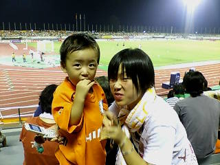 昨日はうちの息子のしゅうたくんと僕の妹と愛媛FCを応援に行きました。親ばかの僕は子供用のユニホームを買ってやり、自分はタオルマフラーを首からかけて応援していました。。。。。で、対戦相手は元日本代表のカズや城のいる横浜FC・・・強敵です。。。7時からキックオフだったのですが、会場についたのが7時くらいでした。しゅうた用のユニホームを買っていたら何やら大歓声!!!愛媛FCが先取点をあげていました!見逃したーーーーーーーーーーー!しゅうたはスポーツのことは何でも「日本チャチャチャ!」って言います。。。なんで、1人で「日本チャチャチャ!」あとは、おかしとジュースをバクバク食ってました。そのあと試合はオウンゴールやら外人のゴールやらで2対1で負けていました。。。。そのころ、しゅうたはやっと「えーひーめーえふしー」と言えだしました。しかし、よく聞くと何か皆でアンパンチをしているとか・・・・何でもアンパンマンか!まぁ、楽しそうなのでよかったです!安心していたら、しゅうたが「ちっちぃ!」えーーーーーーと思いましたが、しゅうたの「ちっちぃ」はウンチのことなので、周りの迷惑になると思い、オムツ交換のためにトイレへ・・・・トイレでオムツ交換をしていると何やら大歓声!!!!!そうなんです・・・戻ってみると愛媛が点を取っています。サッカーの応援に行って、点をとる瞬間を見逃しました・・・・まぁしゅうたが楽しそうだったので良しとします!帰りの車の中でも「えふちー!」「えふちー!」楽しいひと時でした。。。。。。。。しゅうたのユニホーム姿がかわいいと思ったらクリックしてね!ほんと、親バカです。。。。。。。。