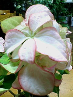 ハンカチの花好きな花の1つなんですがあまり人気がないです・・・肌触りはいいんですけど・・・・・あまり、多趣味じゃないですけど僕の趣味の1つにスポーツ観戦というのがあります。。。この間まではもちろんサッカーでした。。。。最近は高校野球の地区予選を配達中に聞いています。で、今日聞いていたら知ってる応援の歌が流れていて、この歌なんだったっけ?と考えていたら・・・・思い出しました!母校の校歌です!僕の母校は「愛媛県立東温高校」といい松山市の隣の東温市にあります。噂によると、今年はいいピッチャーがいて過去最強だとか・・・・もちろん甲子園には出たことのない高校です。で、試合をラジオで聞いていたらいい試合をしていました。新居浜東との対戦だったのですが(ちなみに秋の大会で新浜東は四国大会に出たらしい・・・)延長14回7対5で勝ってました!高校野球を見ると、自分の子供にも野球をやらせたい!と思います。。。。(結構ミーハーな父親です!)ところで、「ハンカチの花」は寄せ鉢に入れるとかわいいです!この時期、観葉植物等のグリーン物は色々な種類があるのですが、花物が少ないのでポイントになります!おすすめ寄せ鉢レシピ もちろん・・・・「ハンカチの花」 ・・・・「カラジューム」 ・・・・「アンス」or「スパティー」 ・・・・「アジアンタム」 ・・・・「ワイヤープランツ」こんな感じで涼しい南国系寄せ鉢の出来上がりです!人気ランキング。。。。最近よく忘れています・・・・クリックしてね!