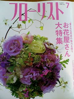 はい。久しぶりの更新です。雑誌のフローリストに僕の作品が載ります。毎月、僕が卒業したJFTD学園のページがあるのですが、そのページを任されました。6月発売の7月号です。僕が、講師になりテーマを決めて、後輩を指導するのですが、自分のことでいっぱいでした。ちなみにテーマは「あじさいを生ける」でした。おとといに写真を撮りました。僕は、2つ作品を作るのですが、そのうちの1つです。(妹に「よく見かける作品!あまり好きじゃない!」と批評され悩みましたが、所詮このレベルが限界です。)写真を撮るのが本当に難しくて、プロのカメラマンの方にお願いしたので、色の明るさとか、どこにピントを合わせるとかは全部お任せでした。しかし、眼で見ると立体感とか微妙な空間とかが写真になると平面になるので自分の思っている感じと全く違った感じになります。しかも後輩の指導をしながらだったので、ほんと、いっぱいいっぱいでした。構成とかも自分で考えるので、なかなか大変ですが、まぁ、いい勉強だと思って・・・・・でも、全国誌なんで、結構プレッシャー。。。。7月号、気が向いたらみてください。ランキング。。。。クリックしてね。。。
