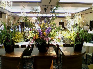 「CTIZN」(シチズン)つづりが違うかも・・・・の展示会の会場に生けこみしました。。。。久しぶりに大きな物を生ける生け込みでした。ボリュームをつけてという注文だったので、秋の花(ケイトウ・ススキ・セッカヤナギ等)を使い、「豪華な秋・・・」そんなイメージで生けときました。スポットが当たると、なかなか雰囲気もでて、自分では満足いく仕事ができました。。。。お客様も気に入ってくれたと思うのですが・・・・・また、こんな仕事こないかなぁ♪