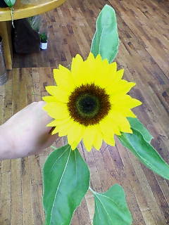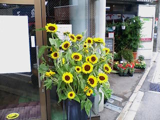 この前紹介したひまわりを店の前に生けてみました。テーマは「ゴッホのヒマワリ風アレンジ」です。(全然違うけど・・・)毎週月曜日に隣の銀行さんに、花瓶に生けたお花を持って行ってるのですが、今日は、ひまわりだけで生けてみました。すると、「ゴッホのヒマワリ」みたいでした。。。。明日からお店で「七夕祭り」を開催予定です。店の前に笹を飾って、店の前を通る方にも勝手に短冊に願い事をかいていただこうかと・・・・願い事がある方はぜひいらしてください。。。。人気ランキング。。。クリックしてね。。。
