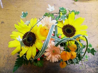 お店でレッスンをしました。講師は・・・・・僕です。ひまわりを使ったアレンジです。初めてアレンジを生ける方もいたので、テーマは「自由」でした。ジーコのテーマも「自由」みんなかわいくできました。この前、ついに「アンパンマンミュージアム」に行きました。うちのしゅうたくんは大興奮!!帰るのがイヤ!って泣いてました。喜ぶしゅうたの顔が嬉しかったです。