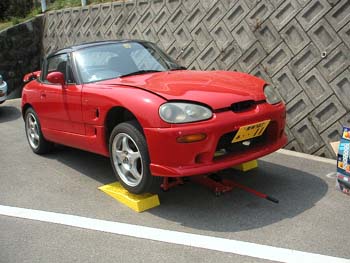 車をジャッキアップし、クラッチレリーズアームのねじを少し緩めて適当な遊びに調整しました。試しに走ってみると、ずいぶん運転しやすくなりました。