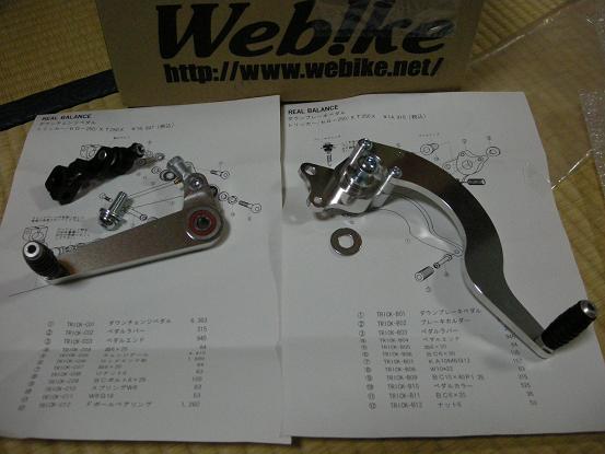 先日、発注した。チェンジペダル&ブレーキペダルが到着しました。。2つで約3万円也・・・(^^i立ちゴケのおかげ?!でふんぎりが付きました。(酔った勢いだったかも?ww)う~んメカニカル。素材はジュラルミン2017削り出し。だそうです。だけど3万円は、きびしー。。実は、ブレーキペダルはアウト・・品で50%off。。良く見ると、リング状の押しキズが3つ。出来れば、チェンジペダルにも入れて欲しかった。ww結局、2万3千円ぐらい。。でも、きびし~~。。