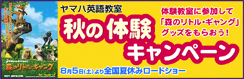 皆さん、英会話できますか?私は英語しか通じないとか、英語すら通じないとか、英語が解っているくせに返事をしない(どこの国かわかります?)とか・・・色々な国に行きました。学校で習っただけの、しかも赤点だったりもした、英語力とあとは度胸で乗り切ってきました。でもね、ぺらぺ~らと外国の人と会話できたらどんなに世界が広がっただろうと思います。あそこや、ここで、迷子にならなくて済んだかも・・・だし・・・うちのお嬢様、3年生の時に日本語を一切話さない外国人の先生の英語教室に3ヶ月(自治体がやっているので、希望者が多く、それ以上継続できない)だけ行ったことがあります。まだ頭が柔らかいから、吸収力が良く、発音もアクセントもそれはもう素晴らしかったです。当時中1だった甥っ子が負けてましたからね。ハワイと日本を行ったり来たりしている、友だちの1歳8ヶ月になるお嬢さん、お父さんの教育方針なのか、英語しか通じません。お父さんはぺらぺらです。奥様はどうだかわかりませんが、CAをやっていたので、多分しゃべれるのでしょう。これはこれで、学校に上がる時に、日本語が不自由になりそうです。グリーンカードを持っているので、アメリカ永住かもしれませんが・・・これからの子どもはインターナショナルでないと、時流に乗れないかもしれません。ヤマハ英語教室は子ども専門の英語教室です。小学校で英語が必修になるようですし、鉄は熱いうちに打てと古の人は言ったものです。9月30日まで体験キャンペーンをやっています。ヤマハ英語教室はこちらから