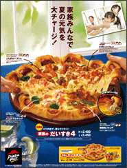 ピザ好きですか?私は、ピザが突然食べたくなったりします。ピザハットでは家族みんなで4つの味が楽しめる“家族のだいすき4(フォー)”が9月30日までの期間限定で新登場しました。「こんがりチーズくん」、「カニエビマヨキング」、「ピザハットグルメ」、「韓国風プルコギ」と1挙4得?子どもからから大人まで4つの味をみんなで楽しめます。 しかも今なら、300組900名様に『温泉宿泊券』があたるキャンペーンが実施中です。ピザハット公式HPまた、いつも通りにピザを買うだけでポイントがたまる“ピザハットクラブ”のメール会員に、9月3日までに登録すると、抽選で1名に三菱自動車「i(アイ)」が当たります。もちろん登録費、年会費は無料です。ピザハットクラブはこちらからあ~~ピザが食べたくなってきた・・・こんな時間にデリバリーしてくれないだろうな・・・