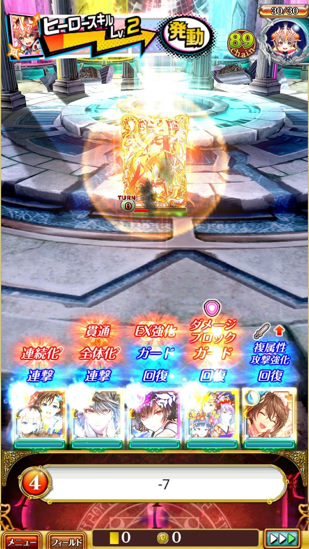 おはようございます。暇王、鶏天です。ヘ(ё)ヘ 外出したーい。そんな気持ちを抑え、黒ウィズの超高難易度に挑戦!!ここ割と難しくて、というのも私、エンテレケイアの精霊大決勝、まともなの持っておりません。25%未満20回も行くか~!!てか具合です。しかも、ステータスアップ系も配布しかない。そんな時、やつが当たりました。MARELESSです。デッキの属性の数とEX-ASの数に応じてステータスアップ!!なんと、最大6700上がります!そのカードを主軸に高チェインEX-ASのカードでデッキを組み以下の感じ!!あれま、あっさり。(゜O゜;ボス戦は右上だけヒーロースキルで吹き飛ばし、後はヒーラーを左上、その他左下タゲ。左下と左上を同ターンに倒したら、後は右を集中攻撃からのボスを集中攻撃でクリア!!結論:ステータスアップ強い。んじゃ、バー!!(^_^)/~~