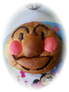 びっくりしたおばさんは 親切にも そのアンパンマンのぱんを子どもにくれました。