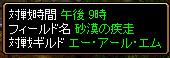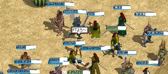 台風接近中の名古屋からこんにちは。tosmapです。最近、MAPを移動する度に、って良くなりません?ギル戦の転送場所に行くまでに3回....そろそろ対応が要るんじゃないのダメオンさん?...で今日の相手は、 .....一服のサブキャラが集まったギルドですな。ココとのギルド戦はいつも実験の場(詳細は過去の日記をみてね)。今回の目的&主役は、こいつ、...赤石最強モンスター。LV1000です。これをなんとかやっつけようと.....ペットを盾に、攻撃開始!..................................................................絶対無理!最高でもダメージ「4」。ほとんど「miss」。屍の山でした。倒せるのはいつのことやら........とりあえず結果。デビロンに勝ったPTは連絡下さい....