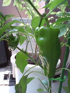 ↑長男が幼稚園で栽培しているピーマン↑夏休みの間は、各自宅で育てることになりました。夏休み前に2個収穫しているんですが、更に2個実ってますv(。・・。)その他にも、まだ蕾のものもあり、まだまだ収穫の楽しみを味わえそうですw自宅に持ち帰った日、長男は『夏休みの間、毎日僕が水をあげるっ!!』と、意気込んでいたのですが・・・・・・初日だけでしたo(´д`)oァーゥーさすが私の子!!3日ともたなかったぜぃ!!!ブワッハハ!(▼▽▼)人(▼▽▼)ブワッハハ!!っつーワケで毎日の水遣りは私の日課になりましたw若干メンドクサイけど、日に日にピーマンが大きくなっていくのが良く分かる。そんなところでちょっとした喜びを感じる私って、小さい?(笑)先日テレビで、子供のピーマン嫌いを克服させる、みたいな番組をやってました。うちの子は、幸いピーマンが好きなのであまり関係ないのだけど、目新しいピーマンの調理法でも覚えようかなぁと、チビ達と一緒に観てました。調理法は・・・・・・覚えてない( ´艸`)ムププなんか美味しくなさそうだった記憶はある(笑)意外にも、真剣に観ていたのは長男でした。調理法だけじゃなく、ピーマン農家の人も出てたんですね。やはりピーマンの嫌いな子供は多いようで、農家の方々も色々工夫してるんですよ。ピーマンが嫌いな理由に多いのが、・苦味・臭いだそうです。ピーマン好きの私にはそこが美味しいんですけどねwで、その苦味・臭いって云うのは、完熟させると減るそうなんです。市場に出回ってるピーマンの殆どは早熟のピーマンだそうで、だから苦味や臭いが強いって事でした。そこでその農家の人が作っていたのが、『赤ピーマン』赤ピーマンは、緑のピーマンと品種は同じなんだそうです。あの緑のピーマンが熟れると赤ピーマンになるらしいです。長男がそこに食いつきまして、『赤ピーマンを作る!!』ってw画像の手前のピーマンはもう収穫しても良さそうな大きさなんですけど、赤ピーマンになるまで収穫は先延ばし・・・・・・ただの興味かもしれないけど、農家の仕事に関心を示してくれたことが、ちょっと嬉しかったりしてw自分達が何気なく口にしてる食べ物が、どういう経路を経て、自分達まで届くのか・・・・・・そういうのを知らないで食べるのと、知った上で食べるのとではやっぱり違うよなぁ、と思いましたw