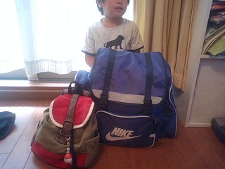 今朝、無事、出発しましたwバスに乗り込むときに写真を撮ろうと思っていたのに、心配事が多すぎてすっかり撮り忘れ・・・・・・なので、昨日の画像を貼り付けておきます(*`д´)b昨夜は全く眠れませんでした。集合時間が早く、寝坊できないっていうプレッシャーで・・・(ぉぃ体操教室に通う同じ学年の子は30人くらいいるのですが、今回参加を決めたのは3人だけ。まだ、子供だけで参加させるのは心配だから・・・と、殆どの子が不参加。あ。上の学年の子は沢山います(笑)私も、正直迷ったんだぁ。。。長男は、こういうイベントが大好きなんだけど、それ故、はしゃぎ過ぎる傾向が。そして先走る・・・Σ(|||▽||| )楽しくなっちゃうと、他の声なんて耳に入らなくなるし、耳に入っても1歩歩いたら、すぐ忘れる(ニワトリ以下。涙)興味を引くモノがあると、制止の手を振り払って行ってしまう・・・Σ( ̄ロ ̄lll) ガビーン・・・ある意味、とても子供らしい子供なんです。。。もう5歳だし、幼稚園にも通ってるし、幼稚園の遠足だって行ってるし、完全に目が届かないと心配ってワケではないんだけど。海に行ったことがないんだよねぇ、長男。私が人前で水着になるのがイヤだとか、日焼けがイヤだとか、そんな理由なんですけどね(笑)そんな長男が初めての海を目の前にして、暴走せずにいられよか!?この時期の海水浴場の人混み・・・迷子になる可能性大。それに、海はプールとは全然違うし・・・引率の先生も居るし、小さい子供を預かって連れて行くのだから、その辺の対策はもちろんしているとは思うのだけど・・・・・・やっぱり心配。はぁぁぁぁぁぁぁぁぁぁぁぁぁぁ。。。ここ数日、懇々と『海の恐ろしさ』と『注意事項』を言い聞かせてきたけど、目の前の新しいでかいリュックにルンルン気分の長男の頭に、どれだけ私の言葉は残っているのだろうか・・・・・・ε-(;ーωーA フゥ…いい機会だといえば、いい機会だと思う。だから今回参加を決めたワケだし。きっと長男のことだから、口煩い私と離れて、すっごく羽を伸ばしてることでしょうw友達やお兄さんお姉さんと一緒に海で遊んで、花火をして、美味しいご飯を食べて、みんなで寝る。いっぱい楽しんで、元気に帰ってきてくれれば、それでよし!!
