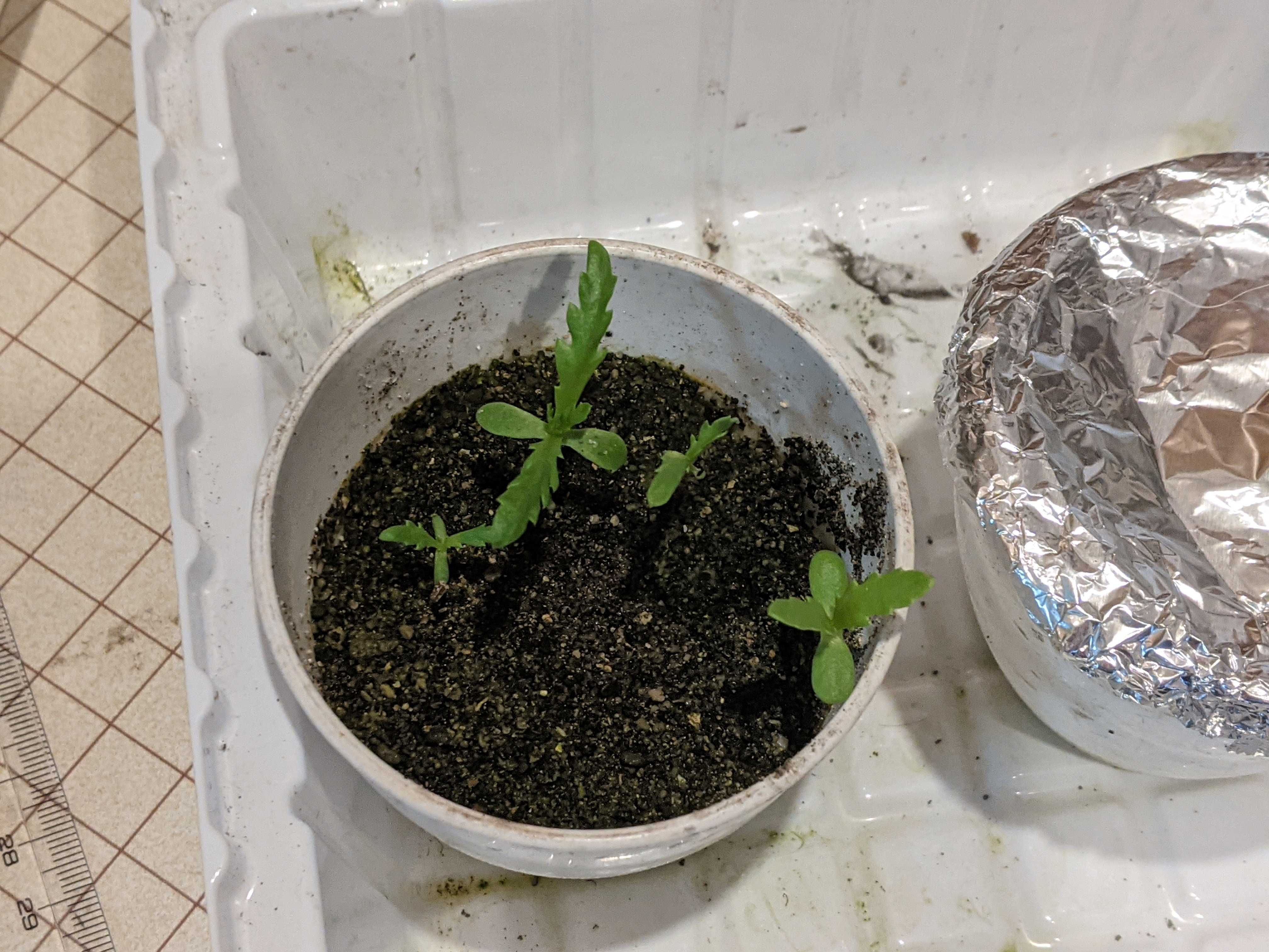 春菊の苗を種から作りました。お部屋の中で、LEDライトを当てて育てました。一番暖房のついている時間の長い台所で栽培しています。根が鉢底から飛び出すのを今か今かと待ちわびていました。昨晩、鉢底からちょろっと出てました。砂の培地なので、お水に浸ければ苗の根もあんまり傷まずにとれます。お外は、朝方マイナスになるんですが、移植して春まで頑張ってもらいます。ガーデンタワーに移植します。植えました。寒さに負けずに頑張ってほしいな。種から作った苗12月11日に地植えにしたレタス、頑張っています。11月15日に地植えした春菊、頑張っています。植えたのいつだったかなぁ。レイズドベッドに移植した春菊も頑張っています。こちらはルピナス。マメ科のルピナス。移植が難しいかなと思ったんだけれど、寒さに耐えて頑張っています。お庭のレイズドベッドに、ペットボトルの筒乗せています。高さ7センチの筒を並べて植えています。レイズドベッドの深さ増しと、放牧中のお猫さまがレイズドベッドで寝転ぶのを防いでいます。他には、一つの筒に一つの苗と思うと植替えが楽かなと。場所の特定ができます。私は、ちょびちょぶ苗を作って、その都度植えるので、このやり方にしました。