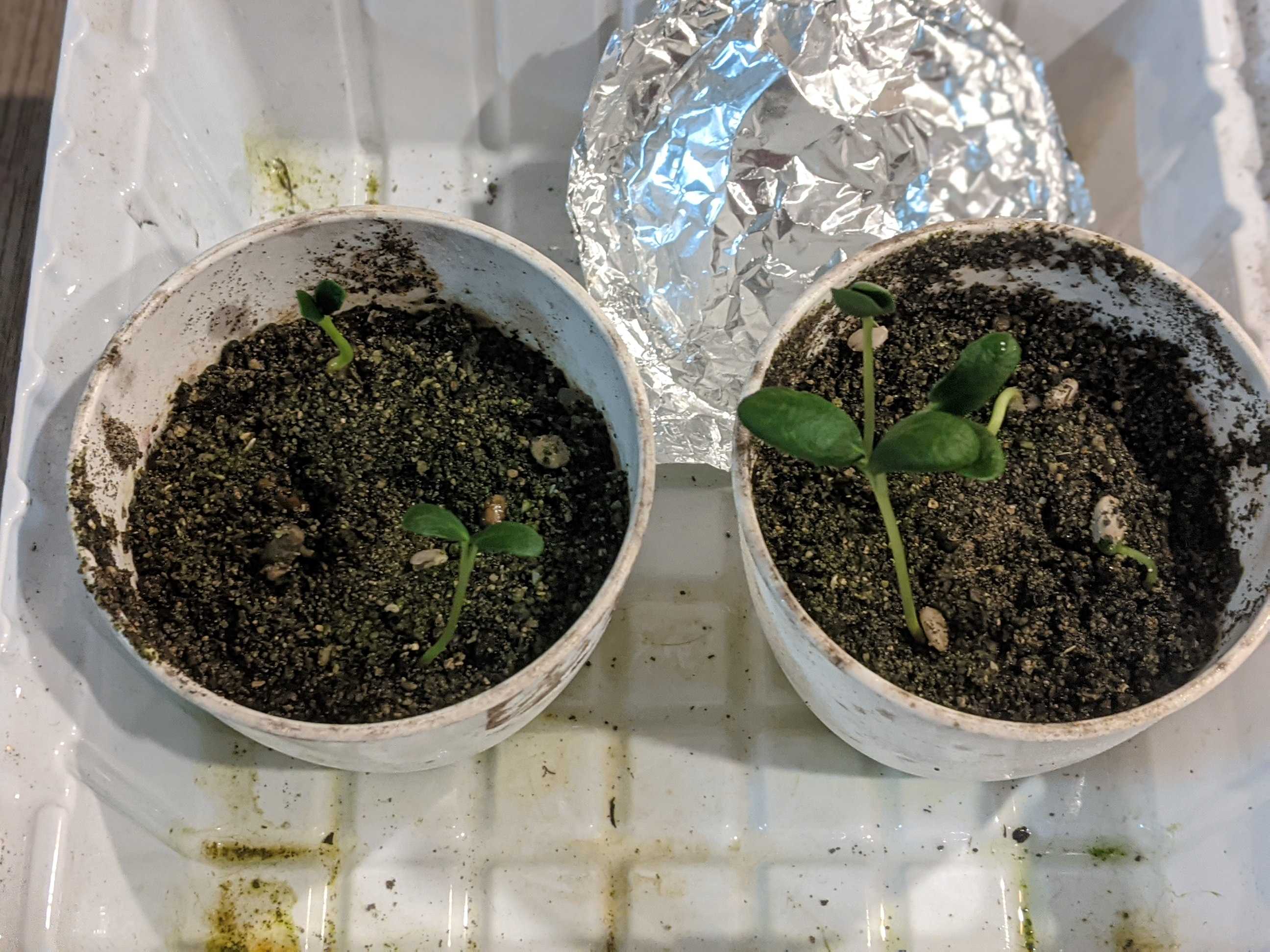 1月4日に地植えしたルピナス頑張っています。4日に新しく蒔いた種種が膨らんで発芽しています。LEDライトで光を当てていきます。立派に育ってほしいです。花壇にルピナスの花をたくさん咲かせたいです。