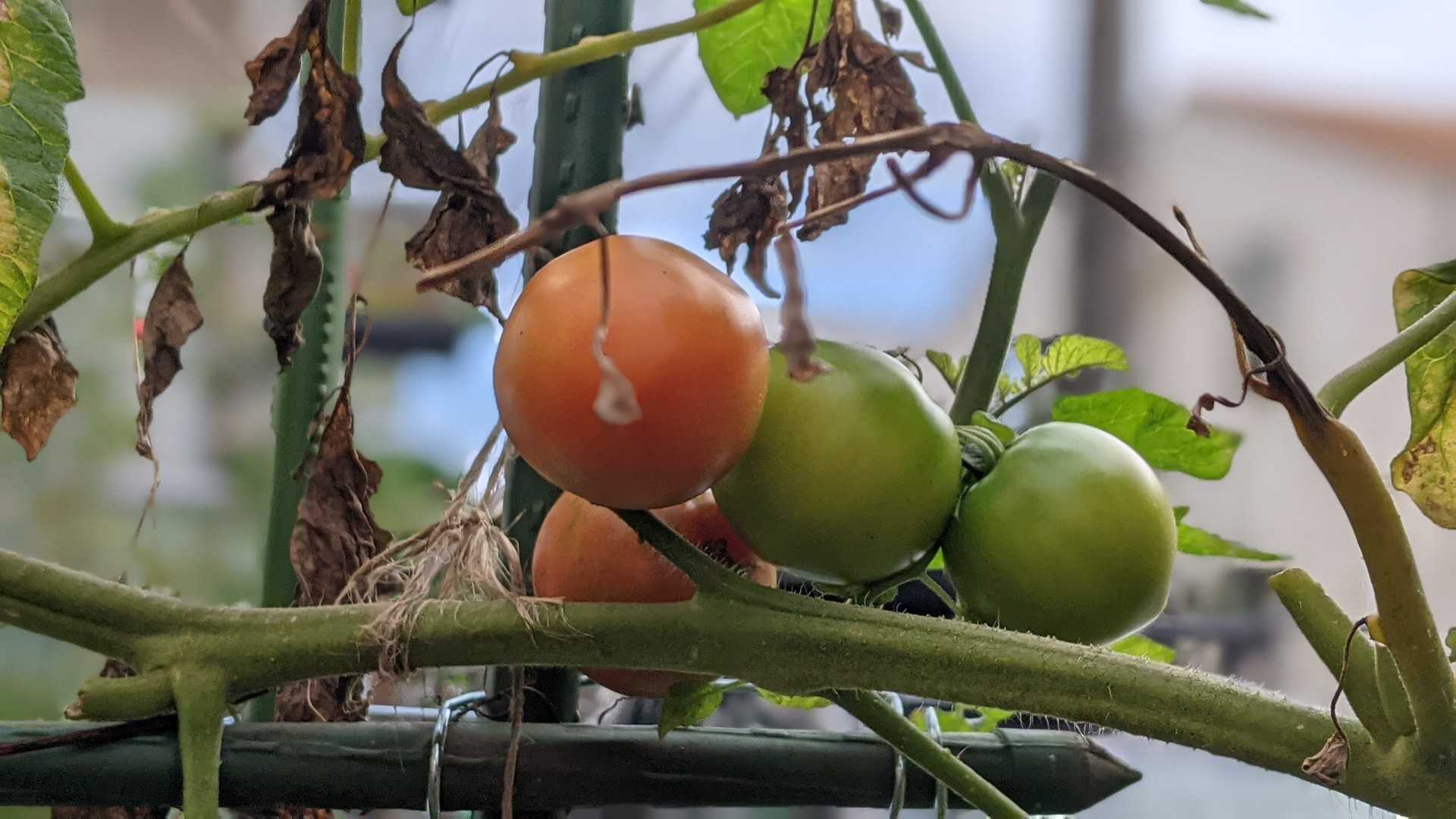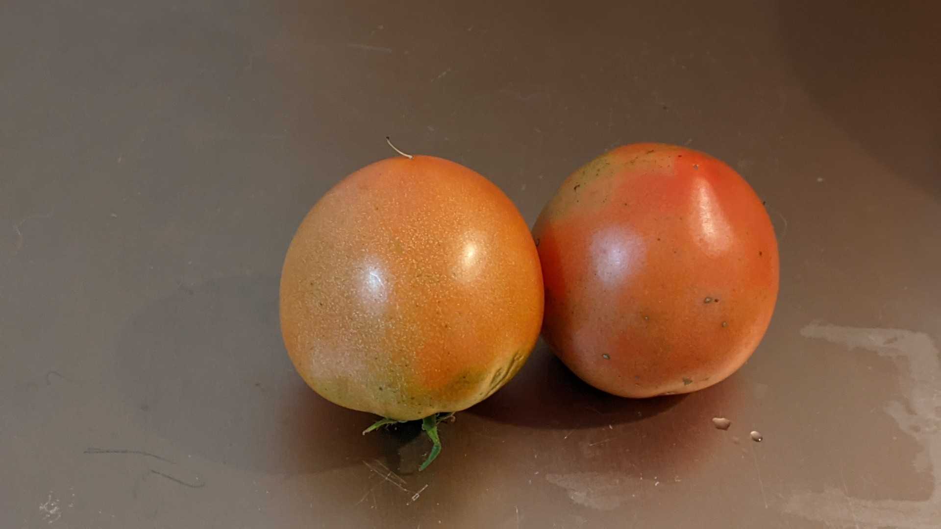 庭になっていたトマトを収穫しました。まだ熟していない状態です。赤くならずに落ちてしまう前に摘みました。 部屋で追熟します。