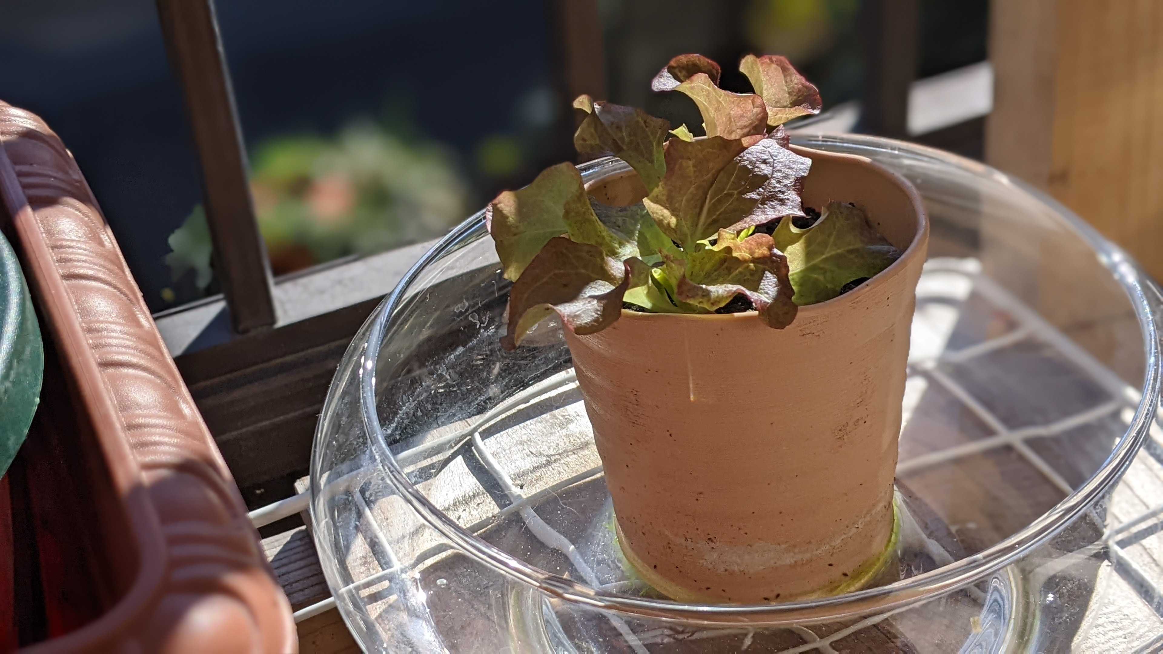 次に植えつけて行く苗です。小さい鉢に三株あります。今栽培中のレタスを食べたら、植え替えていきます。ペットボトルに植えたレタスです。レタス炒めにしないと食べきれません。4株で大きく育ってタワーになりました。先日植えたレタスです。今朝は0度Cだったんですが、熱帯魚用の電熱器を水中にセットしているせいか元気です。養液栽培(培地は日向土)の幼いレタスは元気無くなりました。今朝は0度Cだというのに、昨夜部屋にしまい忘れたのが原因です。こちらは部屋にしまっておいたので元気です。