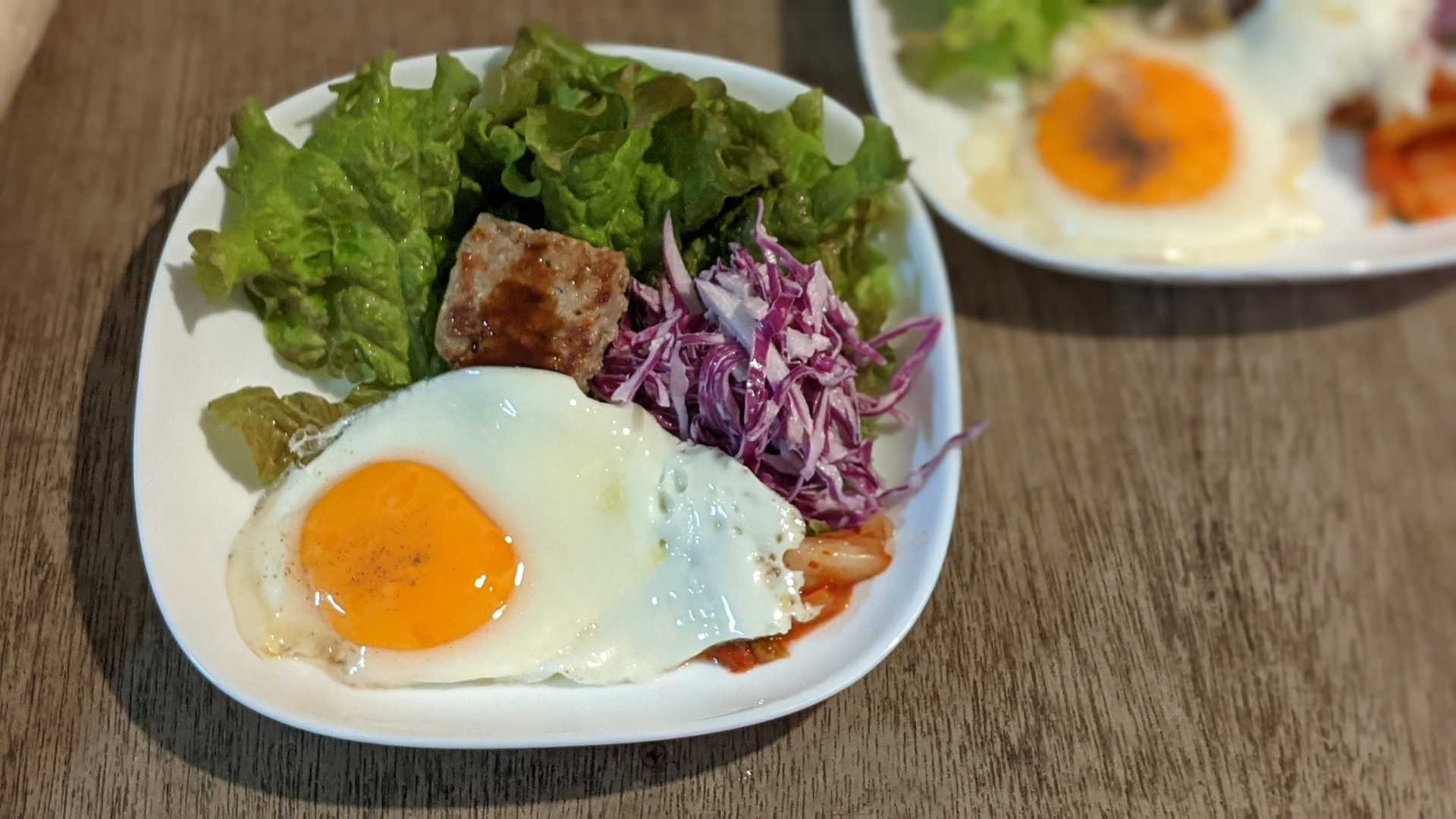 レタスを食べ尽くそうと頑張っています。新しく苗を植え替えていきますから。 二株のサニーレタスを摘みました。沢山あるので、刻んで焼きました。チルドのハンバーグを一センチ角に刻みレタスと混ぜました。マヨネーズに塩コショウを入れて、具材に絡めて蓋付きの鉄鍋に入れたら、コンロの魚焼きに放り込んで焼いて出来上がり。 お弁当と朝食にいただきました。 手前にレタスとハンバーグ焼きが入っています。食べたら美味しかったです。
