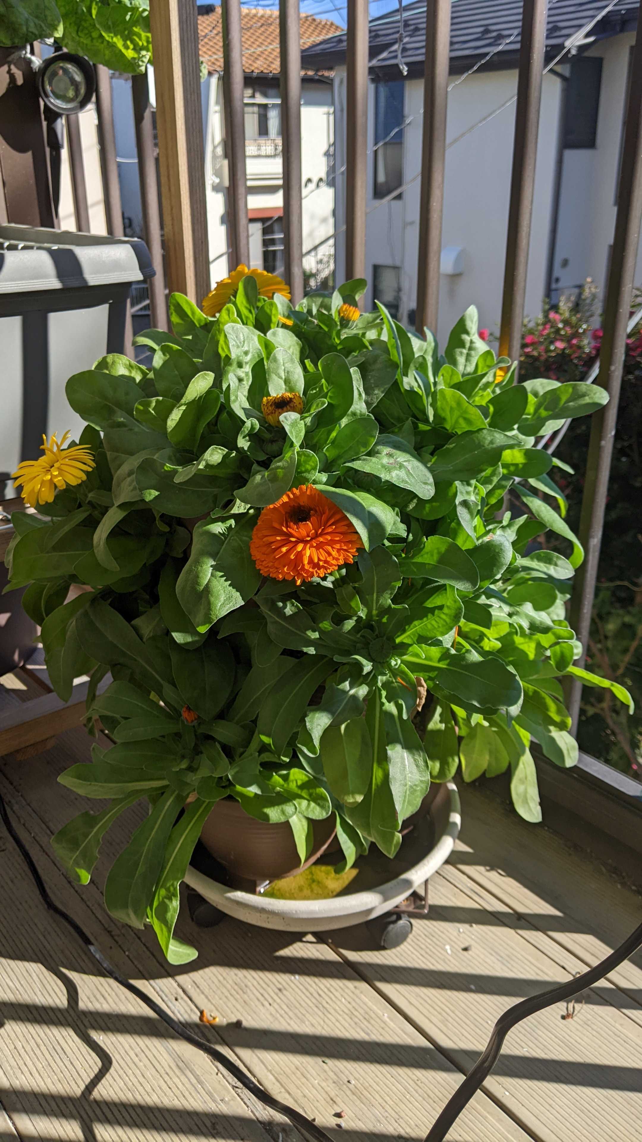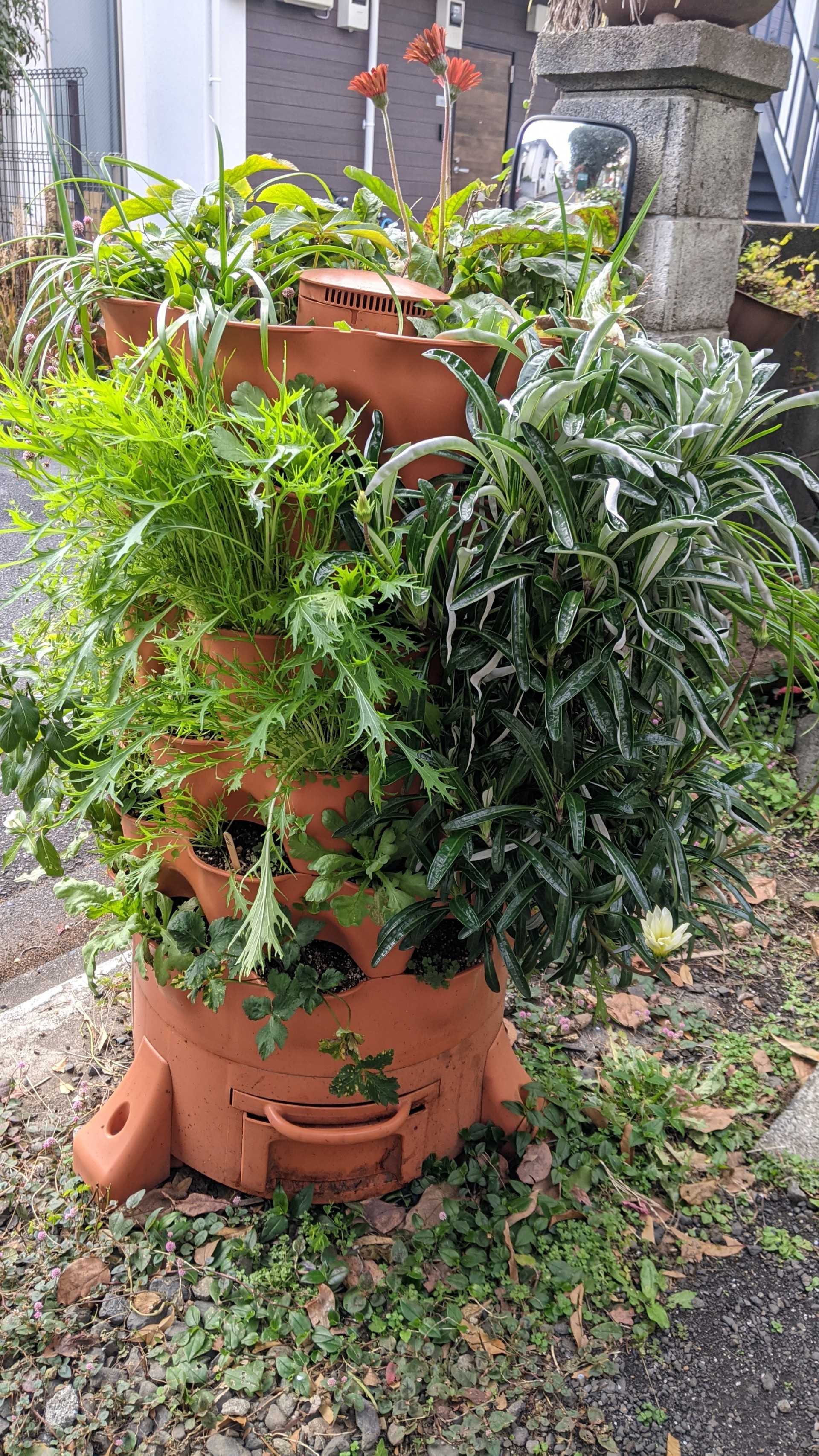 寒くなってきましたが、ガーデンタワーは茂っています。 水菜がいい感じ。 少しずつ刈って食べています。 こちらはガーデンタワーのてっぺんで咲いているガーベラ そろそろ終わりです。