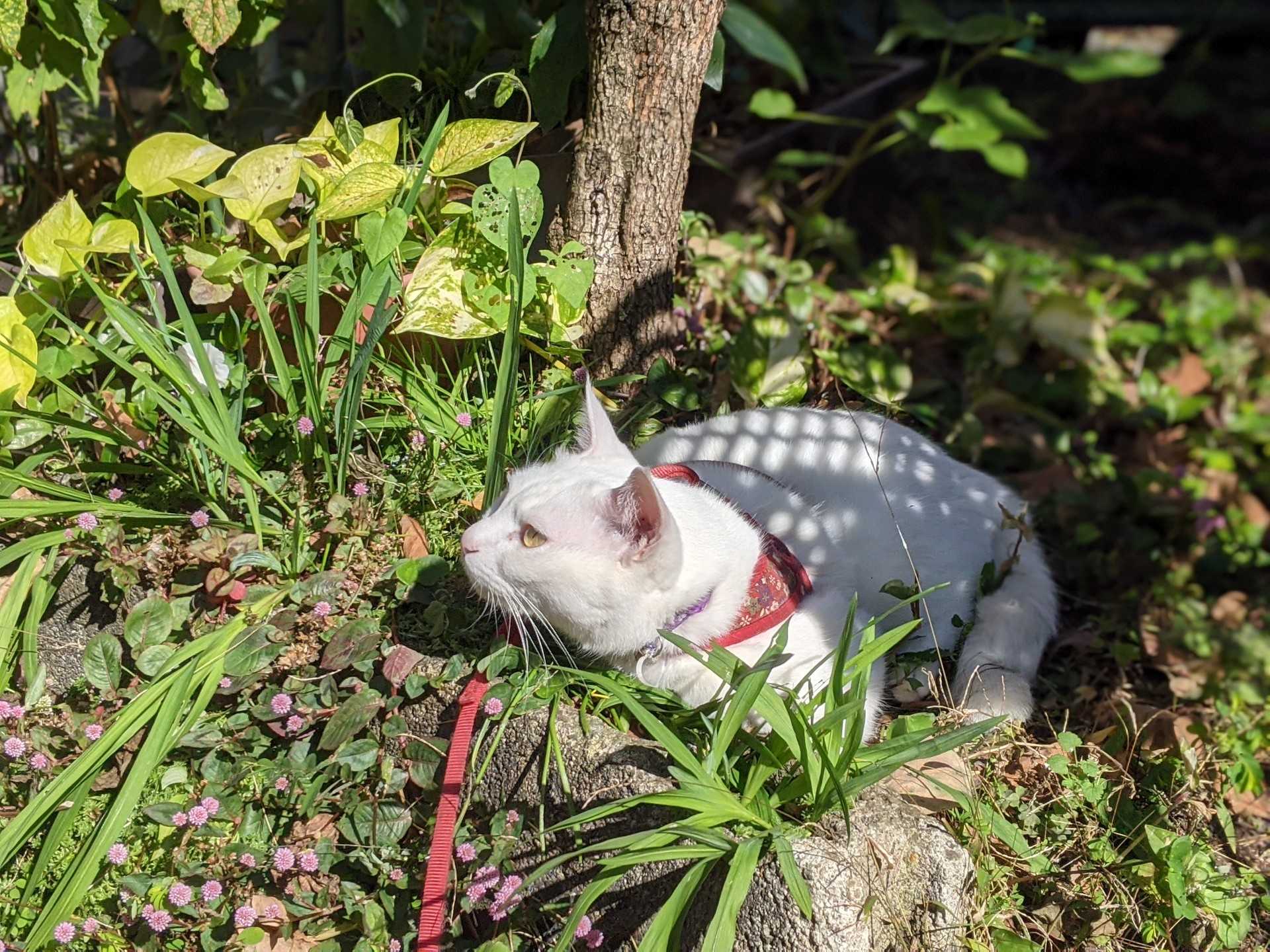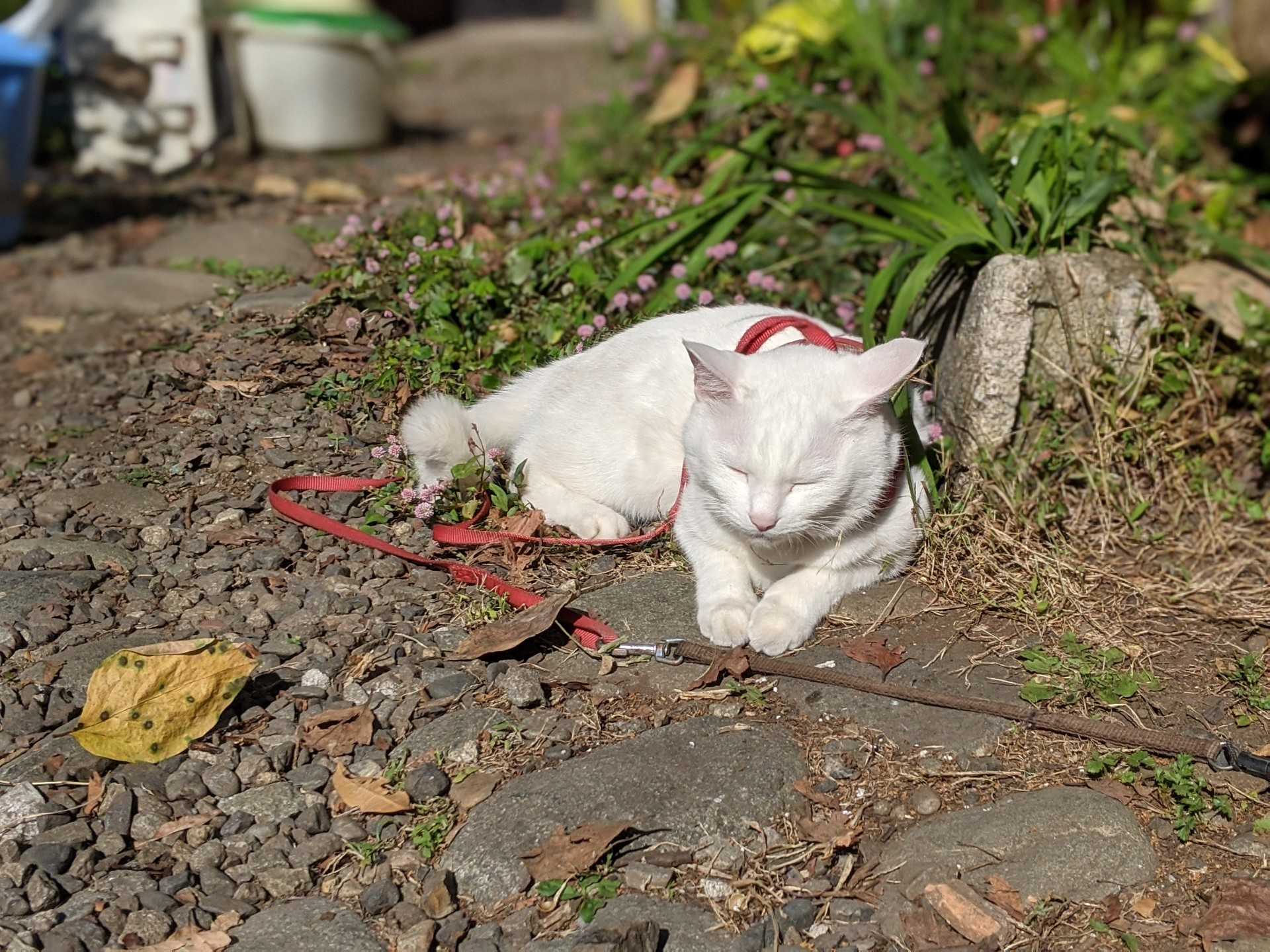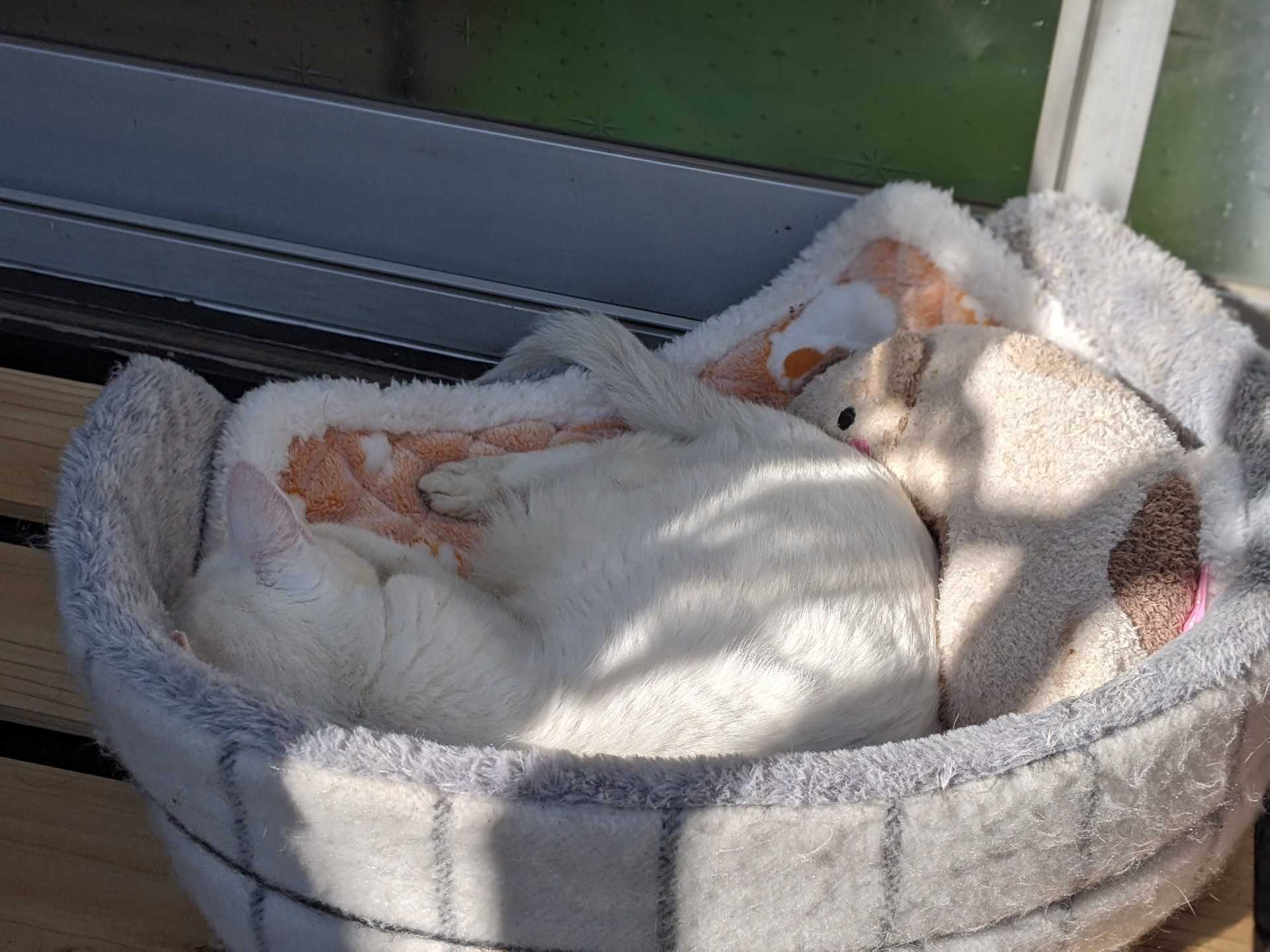 洗濯機を二回回しました。洗濯物はお日さまに当てるぅ〜。猫もお日さまに当てるぅ〜。