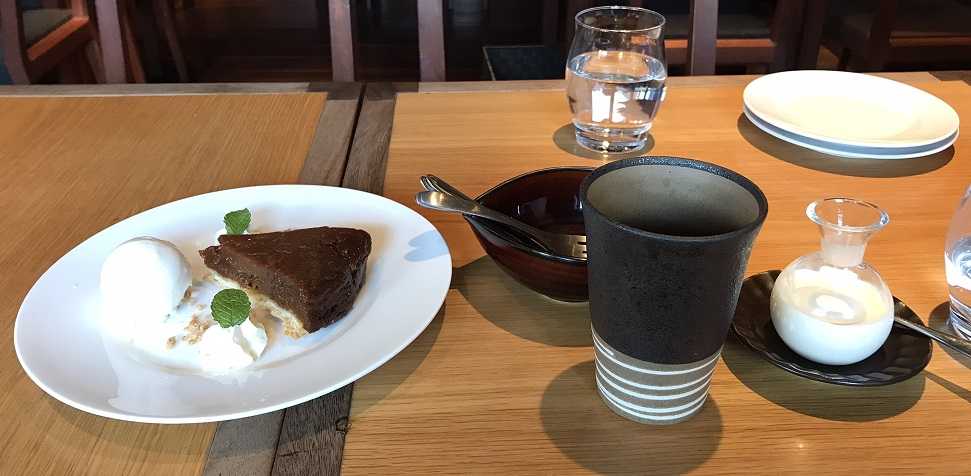 コーヒーとスイーツ(焼きリンゴのタルトと塩アイス)