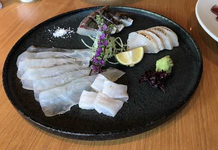 刺身おまかせ三点盛・・・ひらめ、アジ、ホタテ貝柱