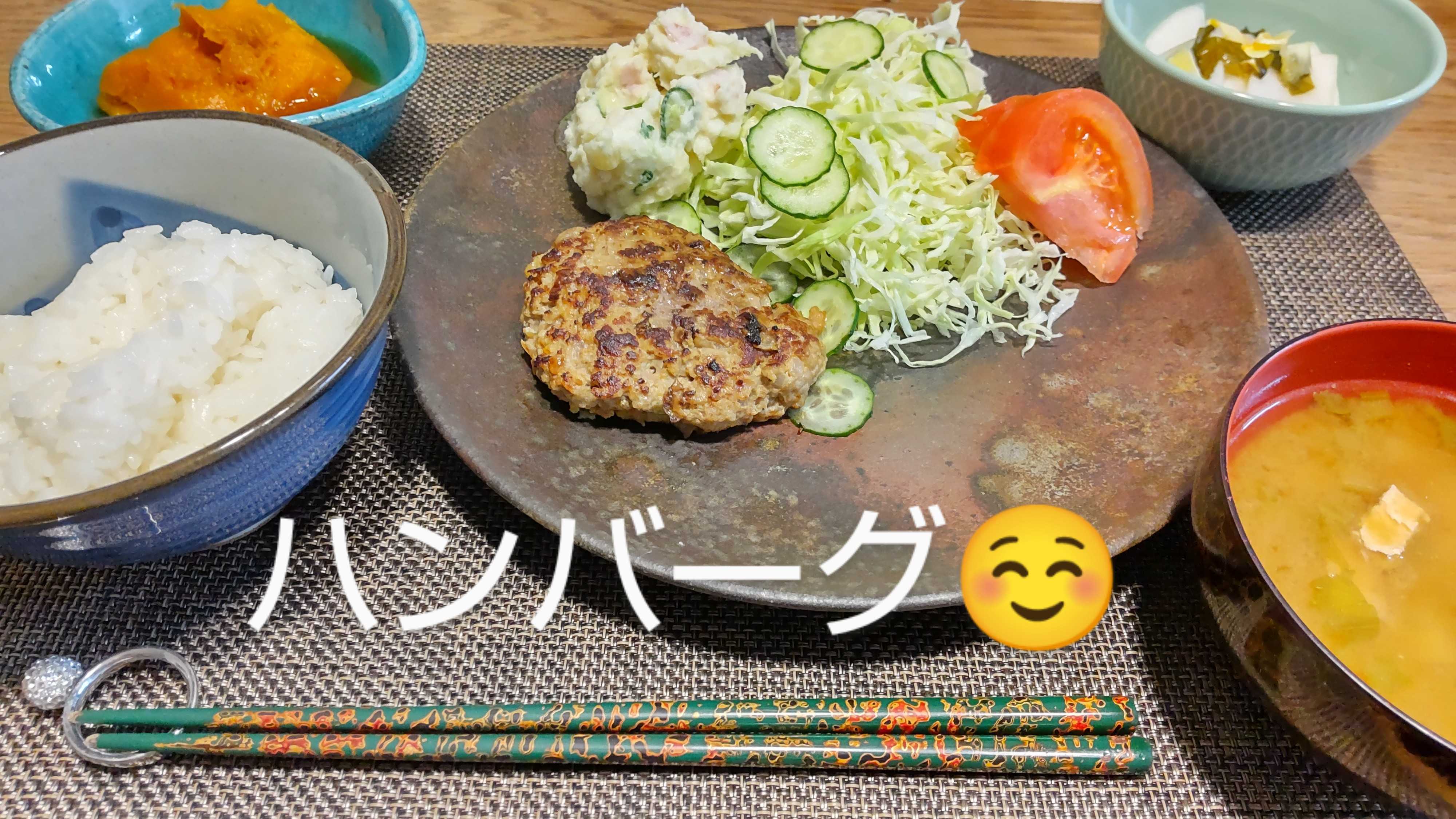 手作りハンバーグとサラダ  ジャガイモ味噌汁