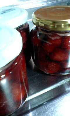 今日も私の住む町はとっても良いお天気。だけどまだまだお外にでるのは控えなくてはいけないので・・・。みんな大人は水疱瘡経験済みなので「おいでーおいでー」コールによりちょこっとだけ気分転換に実家に行ってきます。・・・・・・・・・・・・・・・・・・・・・っと、その前に。先日実家から 桃、びわ、いちご、メロンといっぱいのフルーツの差し入れを貰っていてさすがに一気には食べきれず・・・。小粒のいちごを粒のまま~2パックだけ甘さ控えめのジャムにして保存することにしました。シロップよりのさらっとタイプのジャムなのでヨーグルトに入れても美味しいです。1ビン、実家にお裾分けするとしましょう