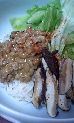 今日はとーーーっても良いお天気でしたね。だけどわが家ではチビたんが水疱瘡のため“巣篭もり”大作戦中~なので今日は朝から大物洗濯といろんなところのお掃除をする一日でした。・・・・・・・・・・・・・・・・・・・・えーっと、納豆が苦手な人は ヒャーーーーッっとなるかもしれませんが・・・。今日のお昼ご飯はこんな感じ。あっさりと“納豆そうめん”に。冷たいおそうめんの上に納豆、レタス&きゅうり、焼いたしいたけをトッピング。+七味をかけて・・・。あとはめんつゆ(ミツカンの追いがつお)をかけてサラサラッといただきまーっす。お野菜とたんぱく質がしっかり摂れてしかもヘルシーなので暑くなってくるとこの手のメニューが多くなりますね。・・・・・・・・・・・・・・・・・・・・ちなみにパパとチビたんは具だくさんそうめん。冷やしたそうめんに冷麺みたいにたまごやハム、きゅうりなどをボリュームたっぷりトッピングしていただきまーーーっす。そして・・・。夜はチビたんのリクエストで大好物のクリームシチューでした。シチューにするとお肉(うちはチキン)をよく食べてくれるので助かります。・・・・・・・・・・・・・・・・・・・・・・・で、水疱瘡の具合はというと。1つ1つの水ぶくれのブツブツが大きくなってきました。昨日ひどかった首の後ろなどの湿疹が少し軽くなってきたようです。最近はシロップのお薬は飲んでくれなくなってきたので今回から先生に粉薬にかえて頂きました。・・・・・・・・・・・・・・・・・・・・ティースプーン1杯ほどのプレーンヨーグルトに粉薬を混ぜて一気にぱっくんと食べるみたいにさせています。この方法ならアレ?っと思っている間にもう飲んじゃったーって感じなのでこぼしたり吐いたりせず、飲み残しもないので確実に飲ますことができますお薬飲ませるのに苦労している方!一度試してみてくださいね。