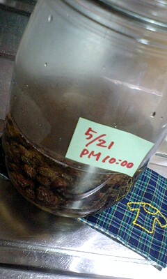 えーっと・・・。一度目の天然酵母作りは残念ながら失敗しちゃったけれど。やっぱりもう一度レーズン酵母に再チャレンジすることに今日からまたスタートでーっす。はてさて?今度はうまくいくといいんだけどあれ・・・水の量がなんだか微妙に少ないような・・・気のせいかな?カメラのアングルのせいかしら?っま、数日見守るとしましょう~。ブクブク育っておくれぇそれまではカメリアさんのドライイーストくんに頑張ってもらいまーっす!って?ササッと入れるだけだけど・・・。